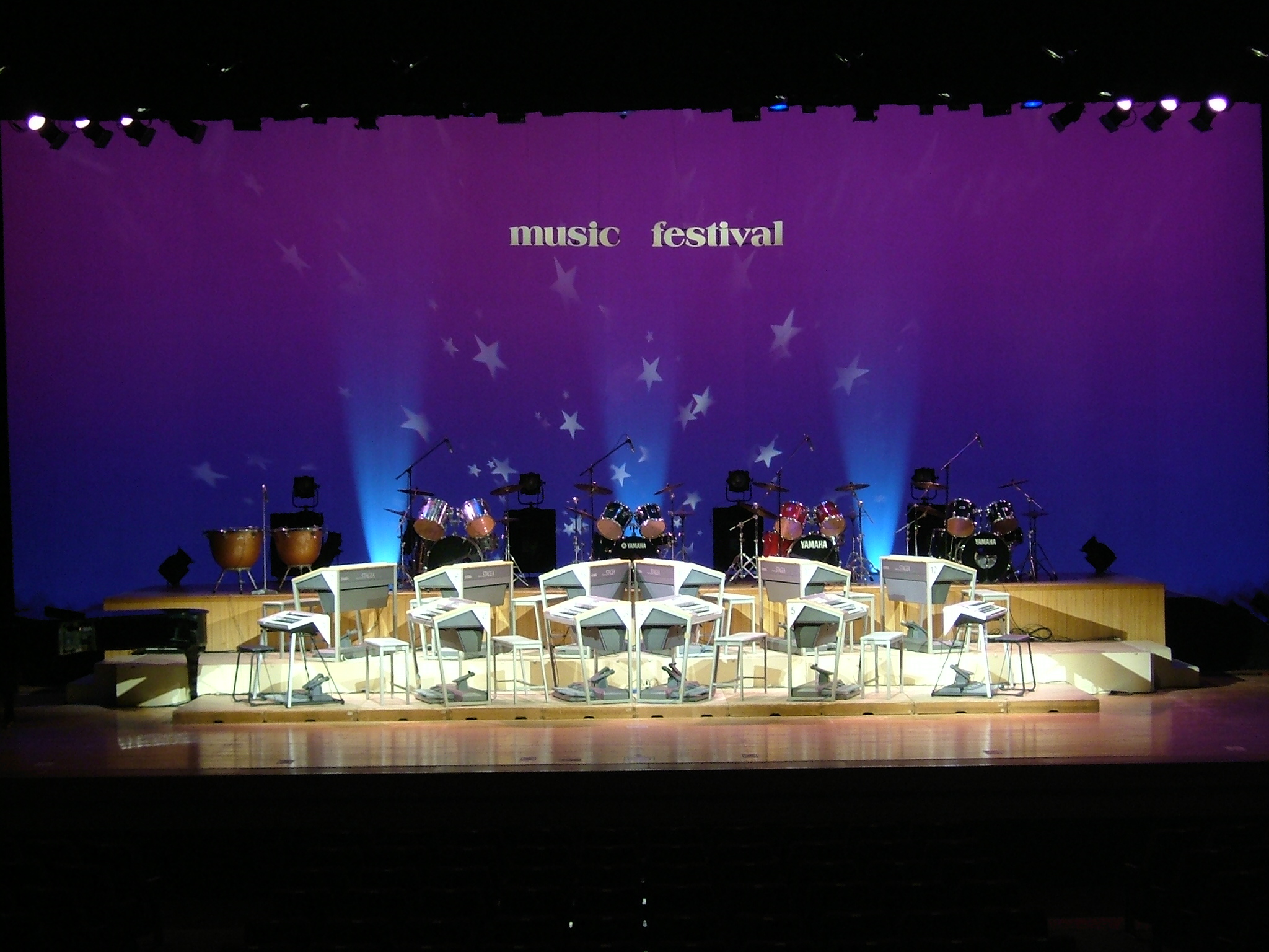LEDライト 弊社は照明にLEDライトを使用しております。 エネルギーや電力事情が問題視される昨今、弊社ではいち早く舞台照明のLED化をすすめました。 環境に優しくかつ省エネで、なおかつ美しい照明演出を実現しています。 小規模なイベントから大規模なコンサートまで、出演者様のご要望に応じて様々な照明プランをご用意いたします。 機材のレンタル、オペレーターの派遣も承ります。 (弊社の実際の照明セット例) 音響についてはこちら